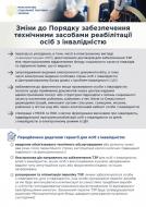 25. Веде облік осіб з інвалідністю, дітей з інвалідністю та інших категорій населення, які мають право на безоплатне забезпечення допоміжними засобами реабілітації (технічними та іншими засобами реабілітації, надалі – ТЗР), і виплату грошової компенсації вартості за самостійно придбані такі засоби, здійснюють заходи зі сприяння їм у оформленні документів та їх поданні до територіального відділення Фонду соціального захисту осіб з інвалідністю, ознайомленні з інформаційними матеріалами щодо переліку та механізму забезпечення ТЗР тощо.