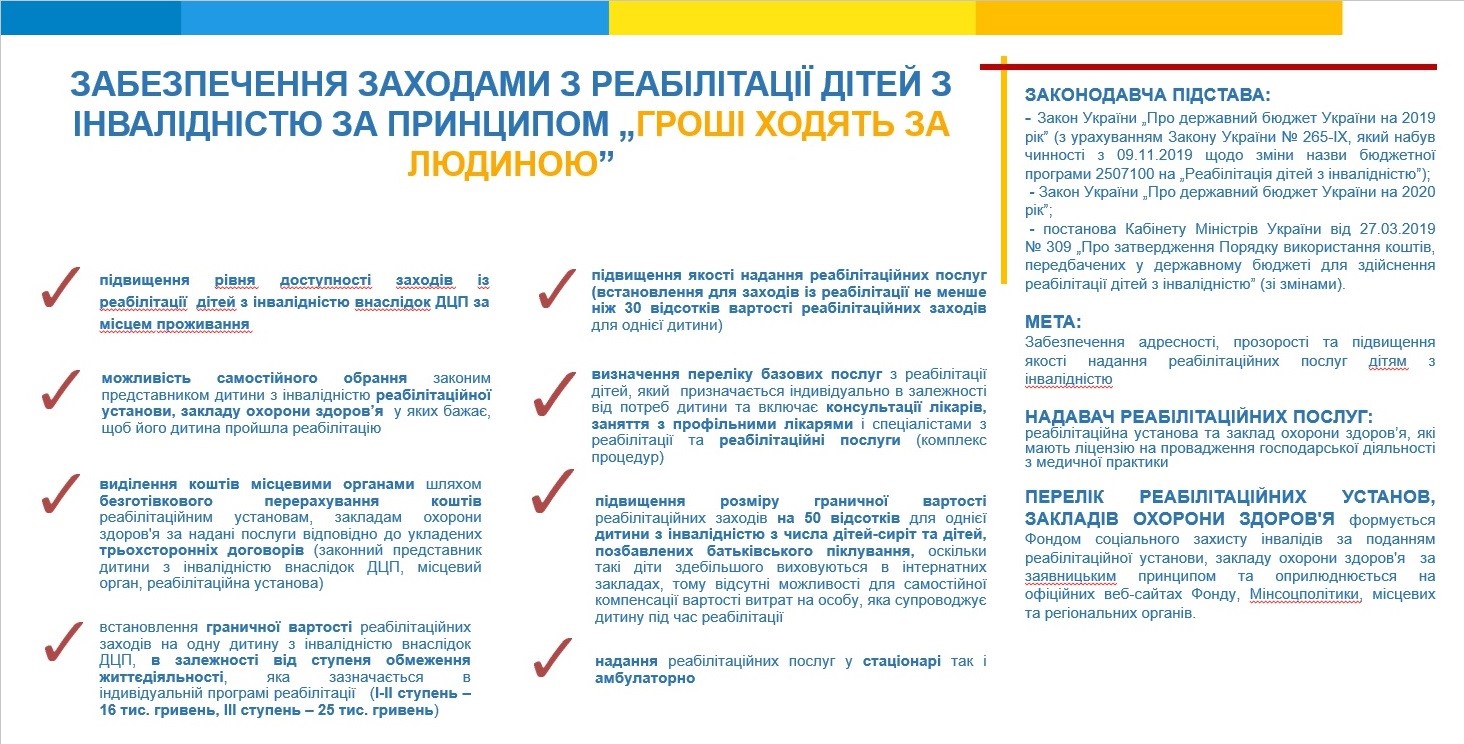 Забезпечення заходами з реабілітації дітей з інвалідністю за принципом `Гроші ходять за людиною`