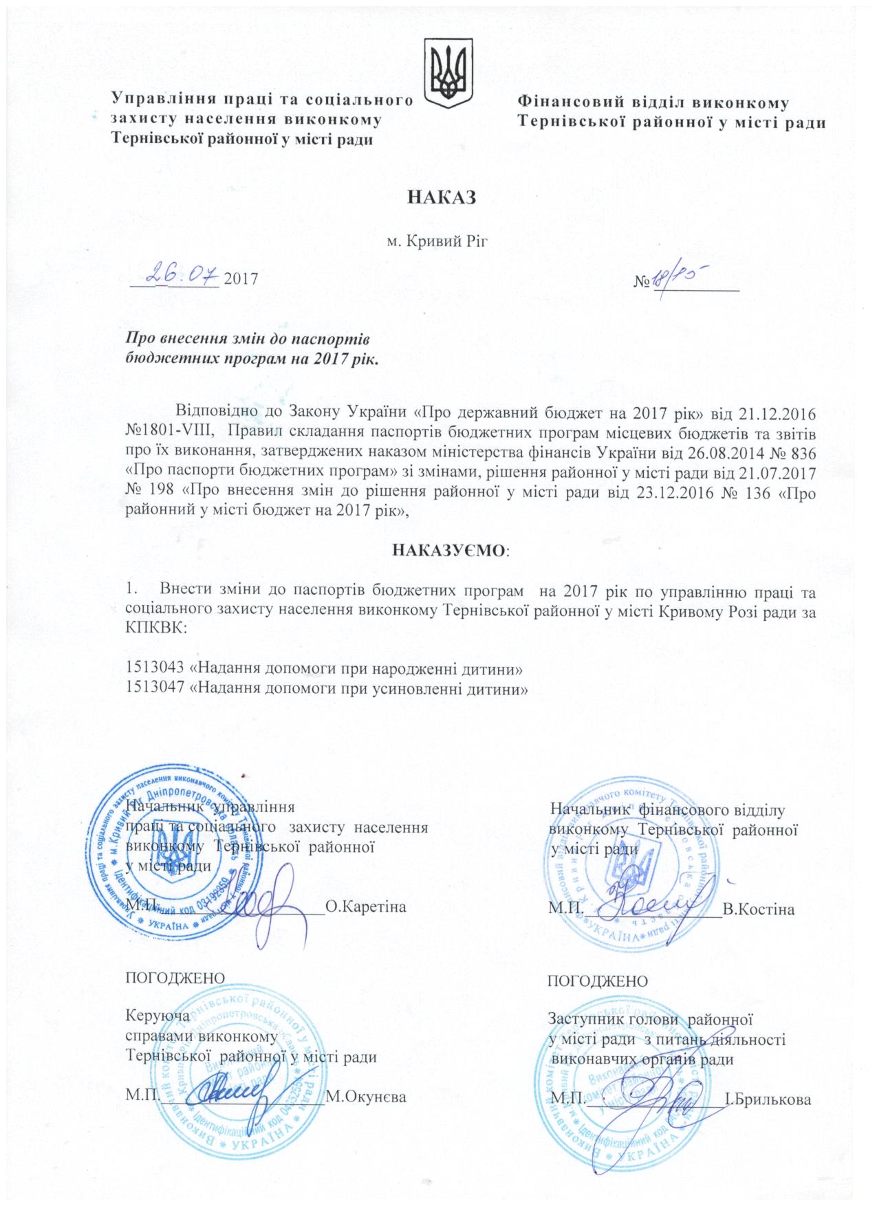 Про внесення змін до паспортів бюджетних програм на 2017 рік Про внесення змін до паспортів бюджетних програм на 2017 рік Паспорт 1513043 2017 c изм Паспорт 1513047 2017 с изм